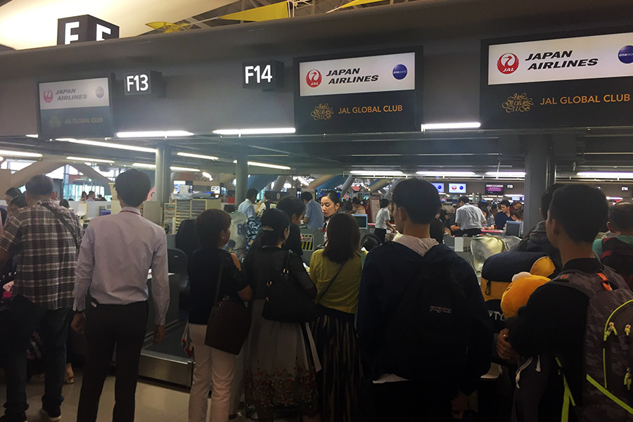 午後4時くらいにバスで関空に到着して、そのままJALへチェックインです。