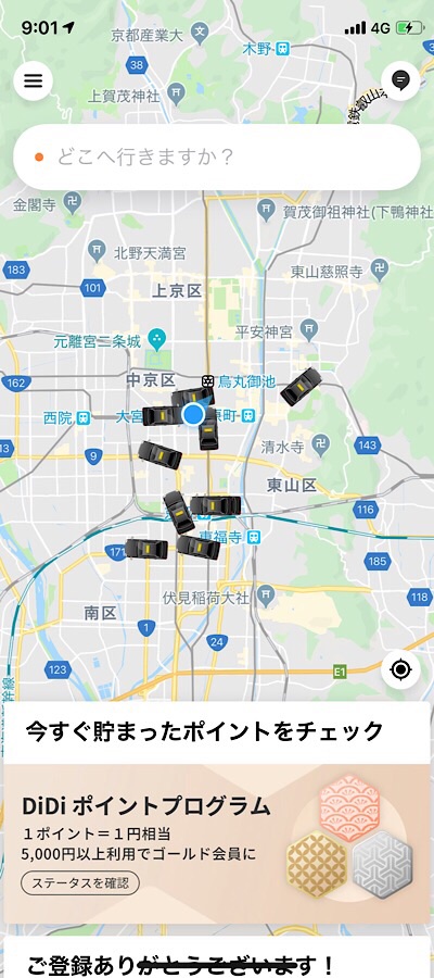 Uber並みのレスポンスが当然と思っていたので、出かける予定の20分くらい前にアプリ操作してみて