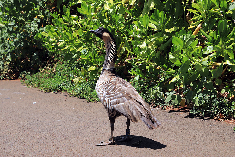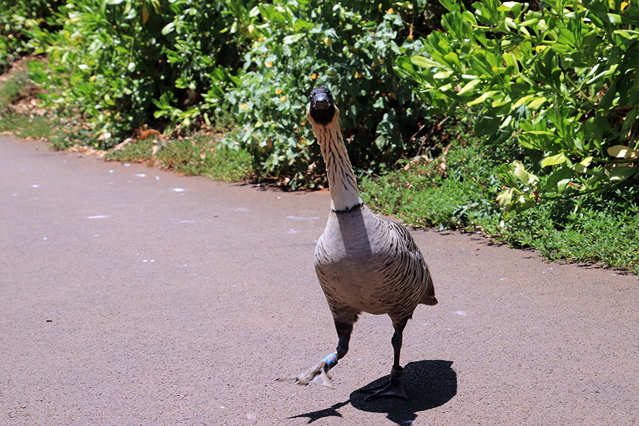 こちら、カウアイ島のキラウエア ポイントの灯台を訪れた時に出会ったネネ。