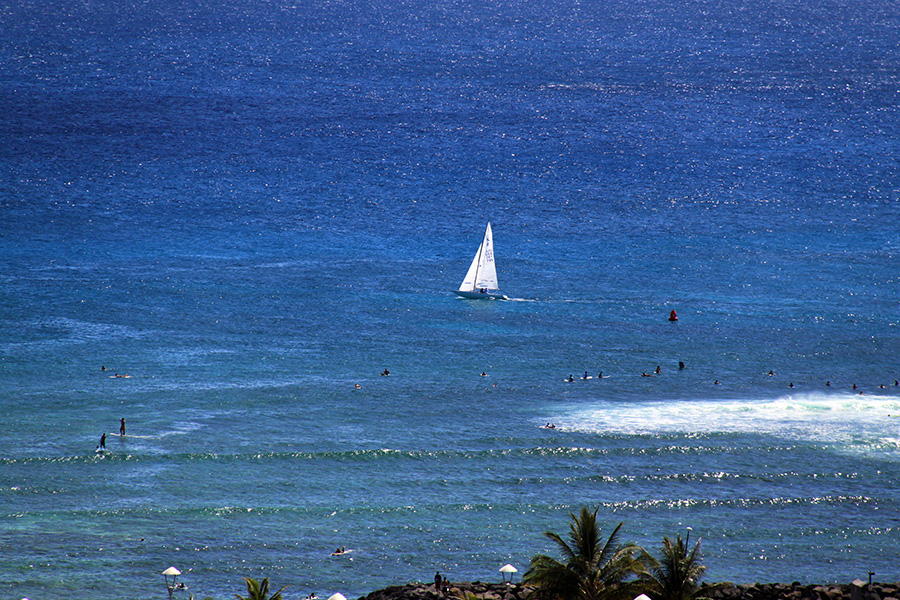 ヒルトンのラナイから眺めたワイキキの海ですね〜〜。