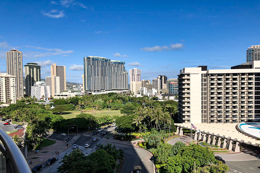 もっとカラカウア大通りに近い方のお部屋だったら、通りを行き交う人々を眺められて面白いのかもしれませんね。