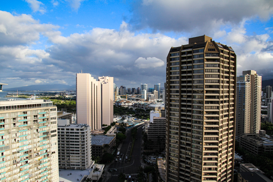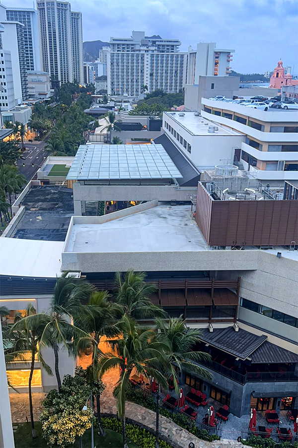 ホクラニは街の中にあるので便利ではあるのですが、景色はビルの屋上が見えるばかりでそんなに良くはないですかね〜。