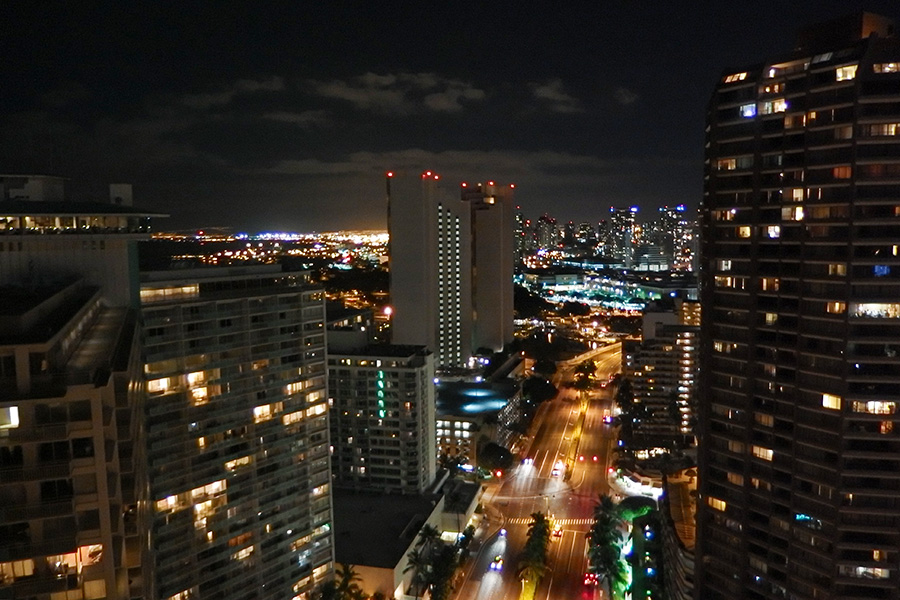 でも、このアラモアナビューの夜景がが気に入ってます。