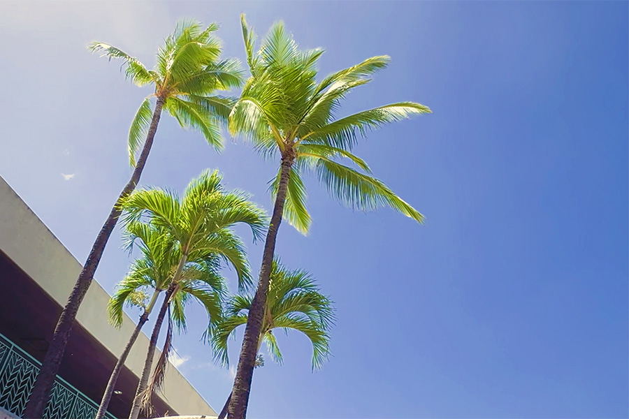 オアフのお日様と青い空、グリーンの椰子を感じながら荷物のカートを押します。