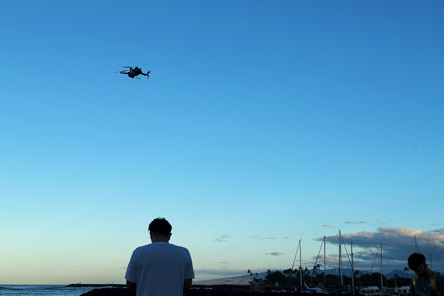 駐車場の先っちょの方に行ってみると、ドローンの練習をする人たちがいます。