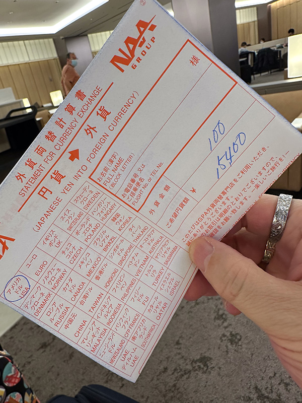 最近はいつも、前回の残りを持っていくので、空港での両替はないですね。
