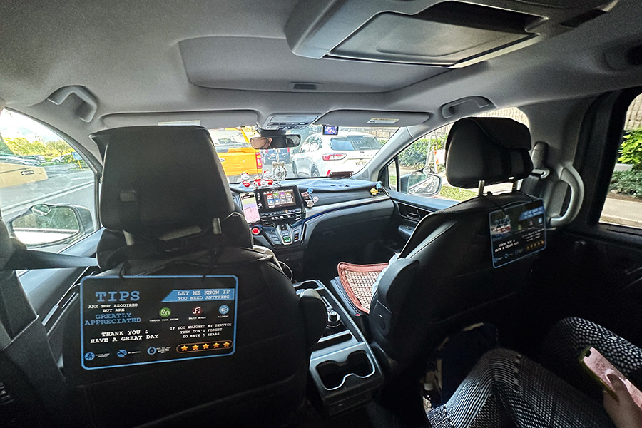 車寄せに入ってきてもらうのも面倒くさいので、ホテルの前のカイウラニアベニューに出て待っていると、すぐにやってきてくれました。