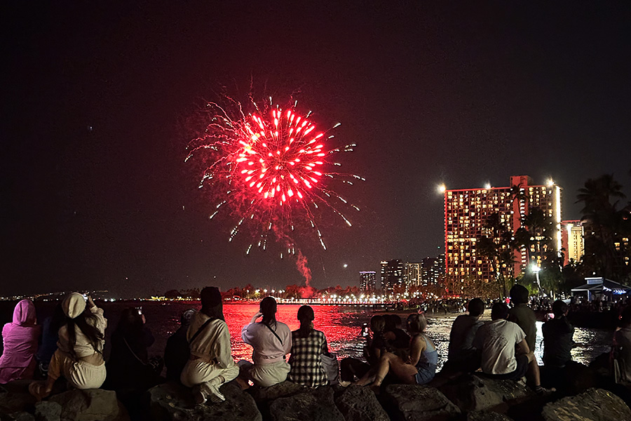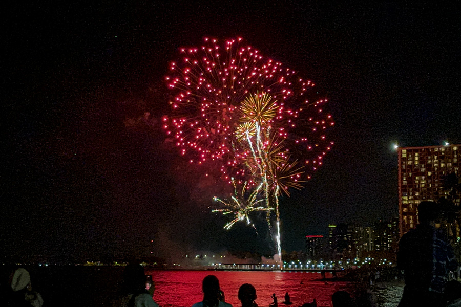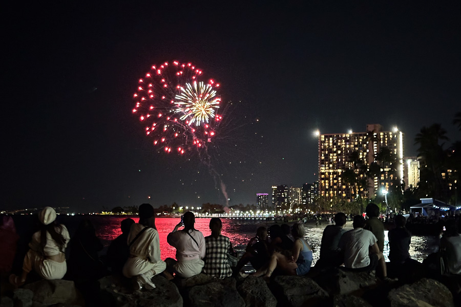 ヒルトンの花火、ハイアットのオーシャンビューの部屋からだと見えないですかね?私は当時まだハワイ3回目で心配だったので実際にはハレクラニの先まで見に行きましたが。