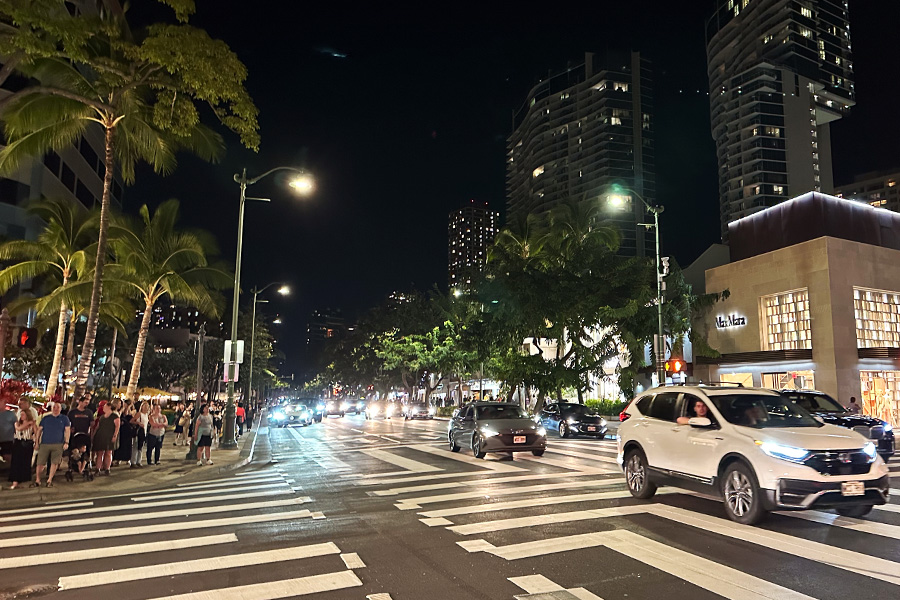 花火後に晩ご飯を食べにカラカウアに出やすいようにね。