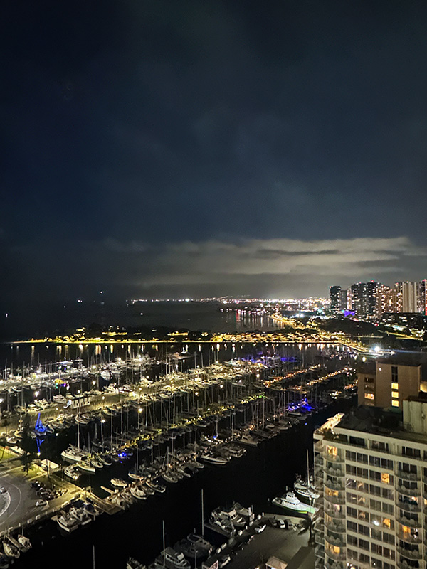 美味しいお料理をいただいて、帰りのエレベーターからの夜景です。