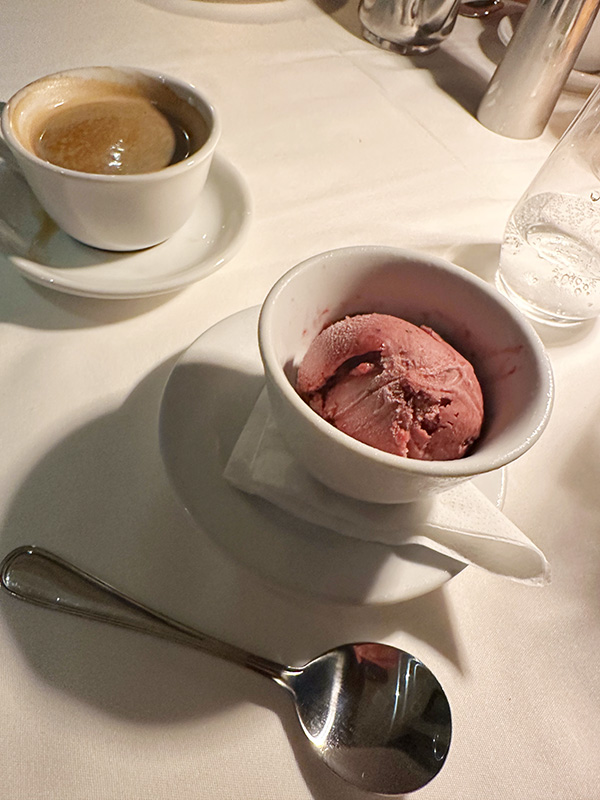 もともと、食後のコーヒーとアールグレイをお願いしただけだったのですが、私は追加でシャーベットを注文することにしました。