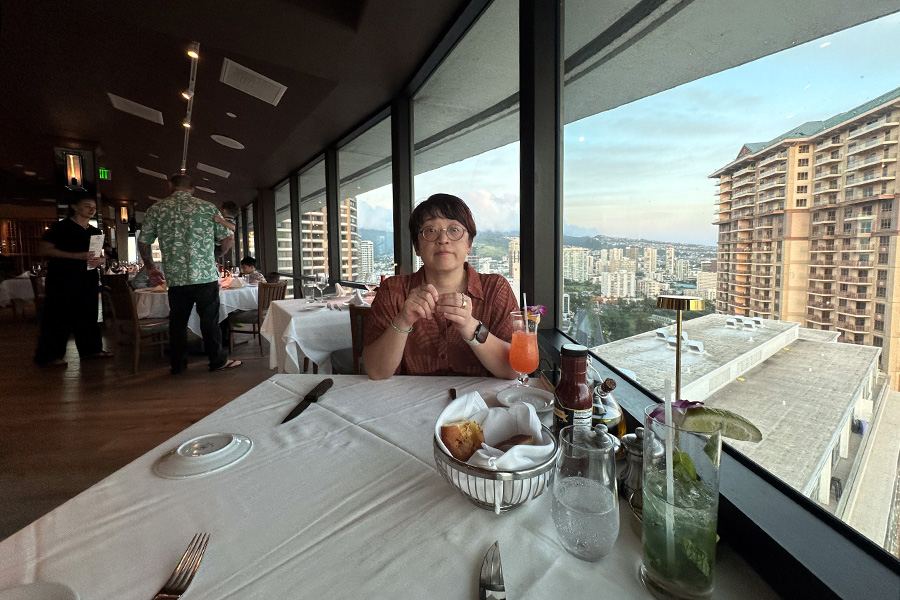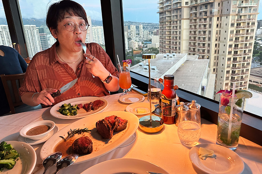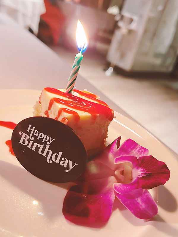 ハワイのレストランではアニバーサリーの有無を聞かれることが多いですが、喜んでいるばかりでなくもう一人のデザートをいただく方がスマートですね。私達も食事の際にデザートは食べないことが多いので勉強になります。