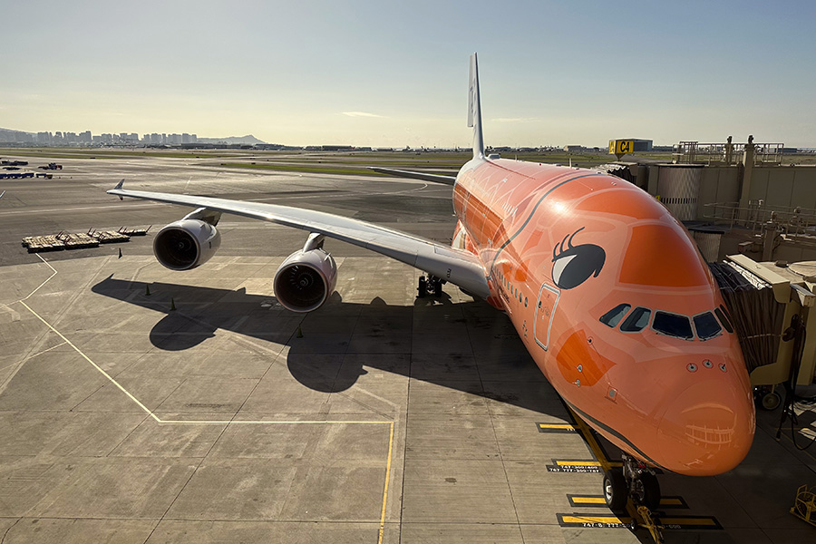 帰りの機体は、サンセットを表現したラーちゃんでした。