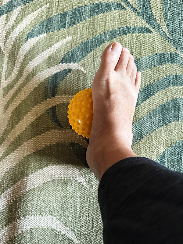 こんな感じで足で踏んだり、座席と太ももの裏の間に挟んでグリグリすると、とても気持ちが良くて血行も良くなってエコノミー症候群予防にもなりそうですし疲れも取れました。