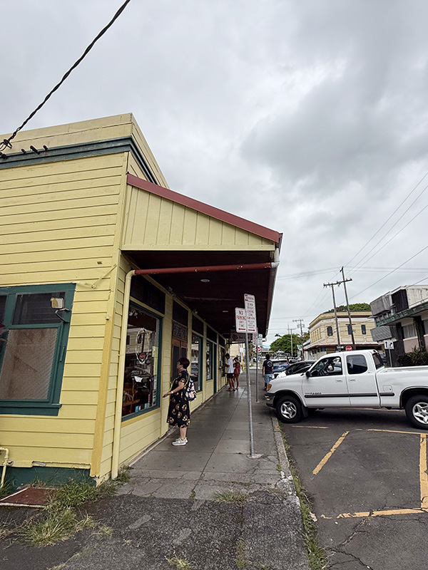 ヒロの街の歴史地区のあの横に長い駐車エリアに空きを見つけて停めました。