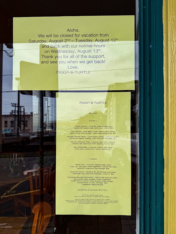 ヒロ生まれのオーナーご夫婦の始められた小さなお店なのですが、この日はちょうどサマーバケーションの真っ最中でした・・・。