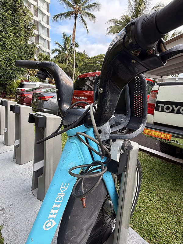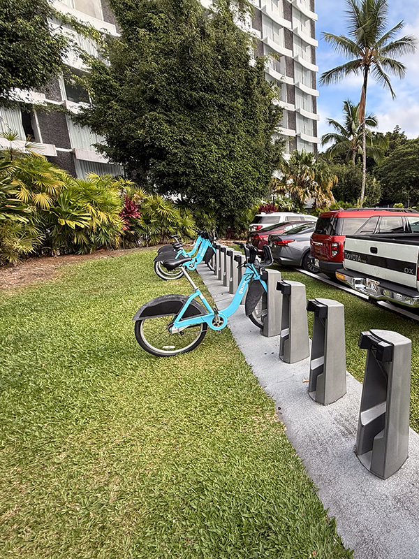 宿泊していたグランド ナニロア ホテルのエントランス付近に、bikiに似たシェアバイク「HIBIKE」のステーションがありました。