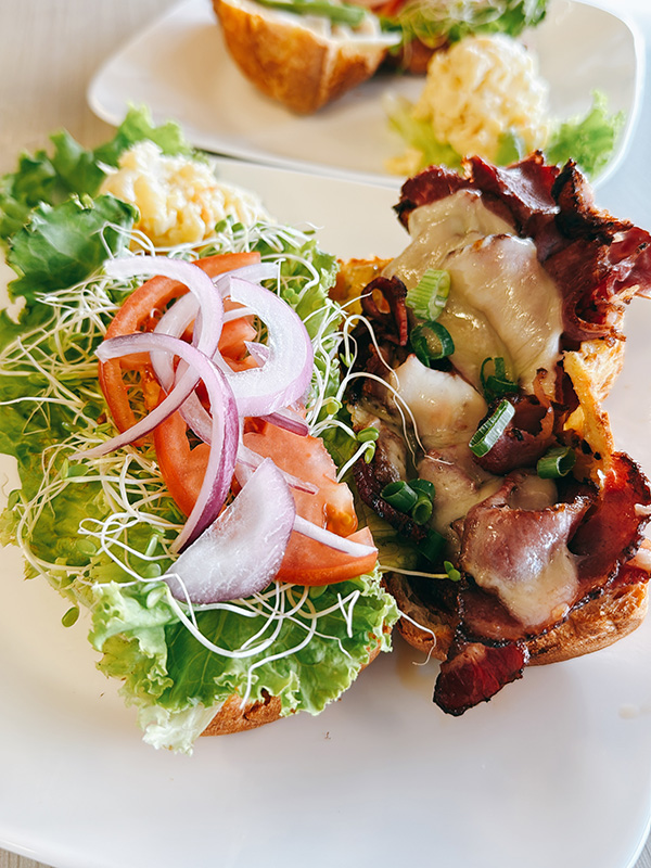 そのまま素のポップオーバーも良いのですが、リリコイバターやマンゴーバターを添えていただいたり、真ん中を切ってそこに色々挟んだサンドウィッチも人気なのです。