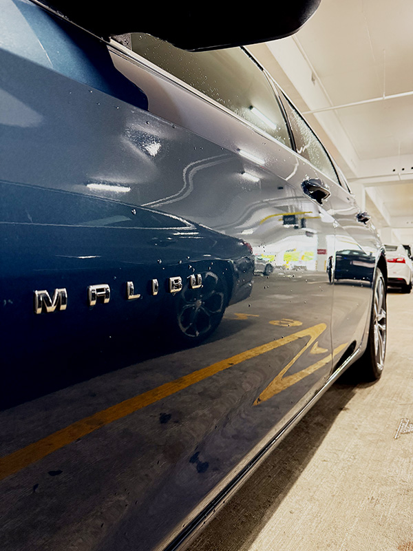 洗いたてのシボレーマリブ。