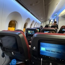 成田を離陸後、水平飛行になってひと段落・・・。機内サービスが始り、機内食が配られましたよ。ANAのプレエコは専用メニューになっていました。私がいただいたのは、「肉豆腐ピリ辛味噌仕立て」。それから、ワインゼリーのボイルシュリンプとパテ・ド・カンパーニュの前菜、 ...