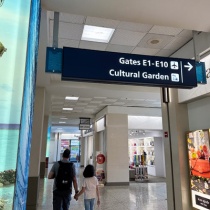 出発ターミナルでこのサインを探してください。「カルチュラル ガーデン」Eのゲートの方向ですね。階段やエレベーターで1階に降りて、中庭に出てみるとすぐに見つかります。今回は、JALではないのでサクララウンジが利用できず、カードラウンジへ。I.A.S.S HAWAII LOUNGEと言 ...